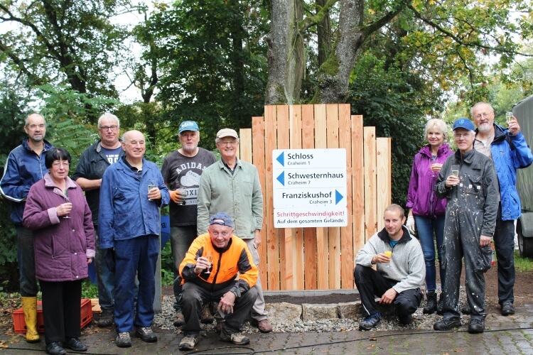 Zum anderen wurden um den Franziskushof großzügig Büsche und Bäume geschnitten, damit die Gästezimmer mehr Sonne bekommen. Unsere dritte Gruppe beschäftigte sich mit der Fertigstellung des Parkplatzes, der Beetpflege und der Gestaltung unserer Beschilderung auf dem Gelände. Nicht zu vergessen ist die tatkräftige Unterstützung im Zimmerservice und Hausteam.